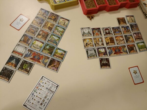 A la fin de la partie, chaque château est comptabilisé. Votre score final sera le plus bas des scores des deux châteaux que vous avez co-conçu. Pour gagner, vous devez partager votre attention et votre dévotion entre vos deux châteaux.