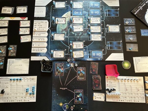Ainsi, les joueurs créent leur propre arbre technologique dans chaque partie, en utilisant ces actions pour augmenter leur force militaire, pour sauter vers différents systèmes exoplanétaires habitables, pour coloniser ces systèmes, pour augmenter leur production de ressources, pour développer une technologie androïde qui permet une croissance sans population, et plus encore.