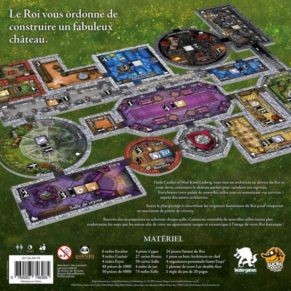 Dans ce jeu de pose de tuiles, vous tentez de construire un fabuleux château. Au fur et à mesure que des salles sont ajoutées à votre édifice, vous gagnez des points de victoire (PV). L’architecte ayant le plus de PV à la fin du jeu remporte la partie !