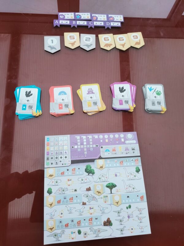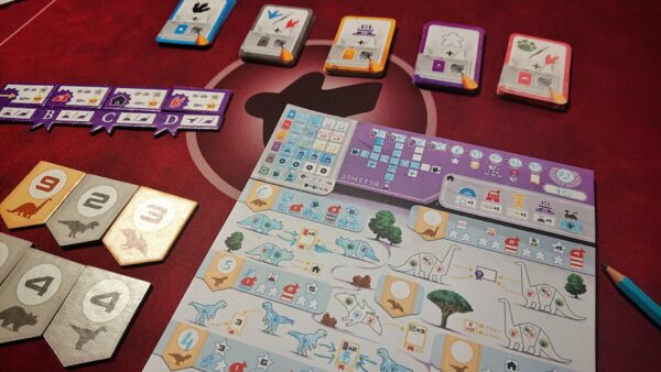 De plus, le jeu se déroule en plusieurs tours où les joueurs devront choisir parmi cinq cartes d'action disponibles à chaque tour. Ces cartes permettent d’effectuer différentes actions telles que la construction de bâtiments, la découverte de dinosaures, l’amélioration de votre technologie, ou encore l’observation scientifique. Donc, chacune de vos actions a des conséquences, et vous devrez faire des choix stratégiques pour développer vos infrastructures et accumuler des points de recherche.