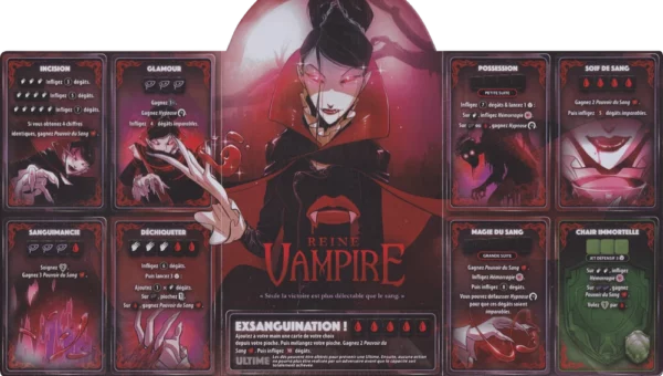 Les joueurs commencent par choisir entre la lumière sacrée de la Séraphine et les ténèbres envoûtantes de la Reine Vampire. Ensuite, ils utilisent les cartes d'amélioration pour personnaliser leurs compétences. Les lancers de dés déterminent l'activation des capacités, tandis que les cartes permettent de modifier les résultats pour maximiser les effets.