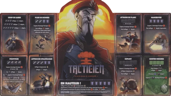 Le Tacticien, expert en stratégie, se concentre sur le contrôle du champ de bataille en utilisant ses compétences militaires. Il optimise ses ressources pour améliorer ses attaques et déclencher des capacités spéciales, rendant ses actions imprévisibles pour l’adversaire. Ses cartes d'amélioration lui permettent d'adapter ses tactiques en fonction des situations, ajoutant une profondeur stratégique importante.