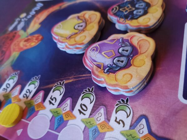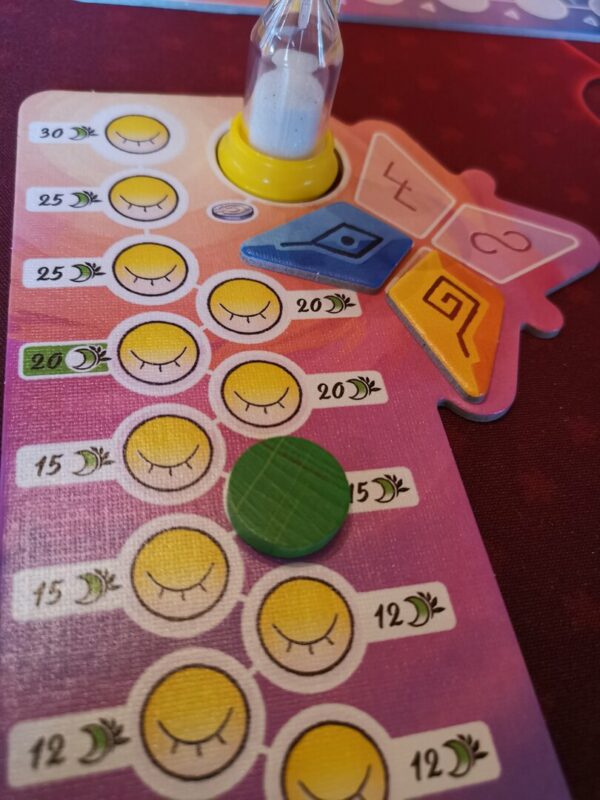 Chaque manche, les joueurs doivent réagir rapidement aux cartes rêve et positionner leurs tuiles en fonction des éléments présents.