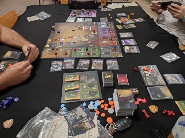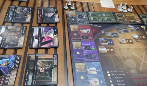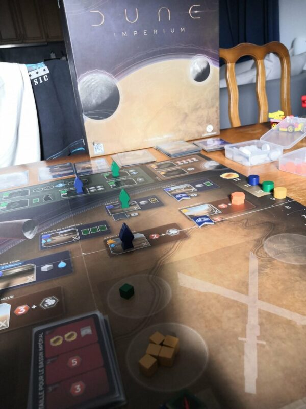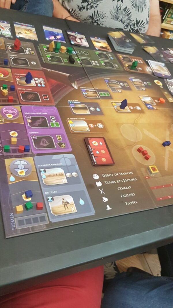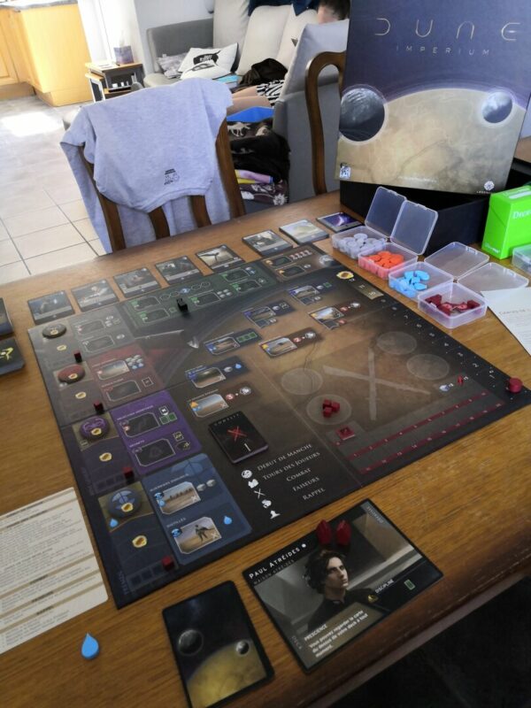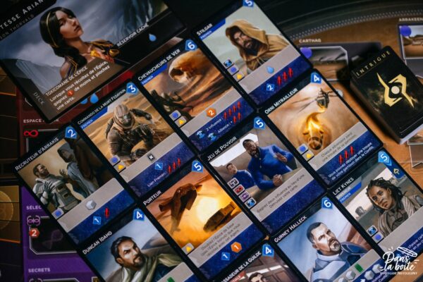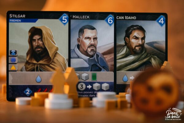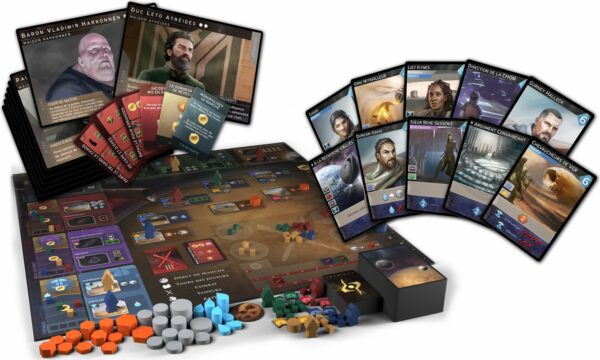 Les cartes vous permettent d'envoyer vos agents à certains endroits du plateau de jeu, de sorte que l'évolution de votre jeu influe sur votre stratégie. Vous pourriez devenir plus puissant militairement, capable de déployer plus de troupes que vos adversaires. Vous pouvez aussi acquérir des cartes qui vous donnent un avantage sur les quatre factions politiques représentées dans le jeu : l'Empereur, la Guilde des Espaces, le Bene Gesserit et les Fremen.