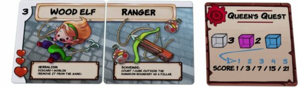 Le jeu inclut des cubes colorés, des cartes de personnage, des cartes de quêtes et un livret de règles. Les composants sont de haute qualité, avec des illustrations vibrantes qui captivent l'imagination des joueurs.