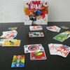 La boîte de Et Bim! contient des cartes d'action et de défis, un sablier, des pions de score, et un livret de règles détaillé. Les cartes sont illustrées de manière vive et amusante, ajoutant au charme et à l'attrait visuel du jeu.