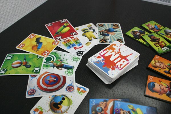 La stratégie dans Et Bim! repose sur la rapidité et la précision. Les joueurs doivent décider instantanément comment réagir à chaque carte, pesant le risque de se précipiter contre l'avantage de gagner des points rapidement. Les cartes piège ajoutent une dimension supplémentaire, forçant les joueurs à rester vigilants pour éviter les pénalités.