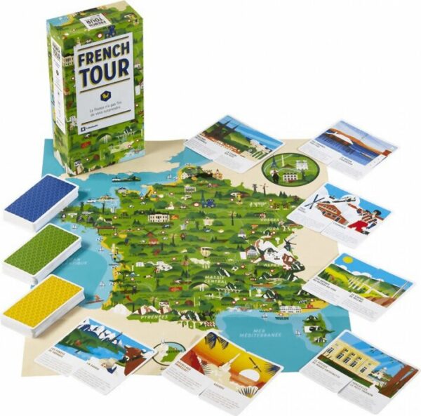 Pour commencer embarquez pour une aventure passionnante à travers les plus belles régions de France avec le jeu de société French Tour. De plus, conçu pour les amateurs de voyages et de découvertes culturelles, ce jeu vous invite à explorer les trésors et les merveilles de la France tout en vous amusant en famille ou entre amis.