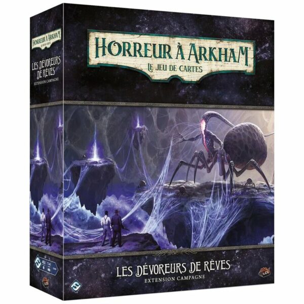 Il existe un royaume caché en dehors du monde de l'éveil : un royaume de fantaisie, d'imagination et de cauchemars. Après qu'un auteur occulte, Virgil Gray, a raconté ses aventures dans les 'Terres du Rêve', vous décidez de partir à la découverte de la vérité par vous-même. Rien n'aurait pu vous préparer aux terribles merveilles qui habitent l'autre côté...Ensemble, ces groupes divisés doivent affronter non pas une, mais deux anciennes terreurs qui se disputent le contrôle des deux mondes. Qu'est-ce qui est réel et qu'est-ce qui est fictif ? Et quels secrets se cachent dans les lieux sombres et interdits au-delà des portes du sommeil ?Cette extension regroupe l'ensemble du contenu de la campagne et des scénarios du cycle original des Mangeurs de rêves, cinquième cycle d'extensions d'Horreur à Arkham : Le Jeu de Cartes. Les joueurs n'ont besoin que d'un exemplaire du jeu de base Horreur à Arkham : Le Jeu de Cartes pour se plonger dans l'histoire.Il ne s'agit pas d'une extension autonome. Un exemplaire d'Horreur à Arkham : Le Jeu de Cartes est nécessaire pour jouer.