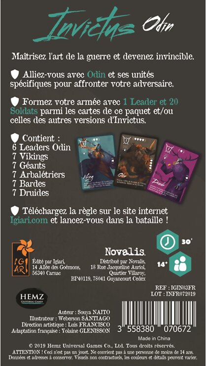 Plongez dans le monde fascinant de la mythologie nordique avec Invictus - Odin, un jeu de société stratégique qui vous plonge dans l'univers épique des dieux et des héros. Conçu pour les amateurs de jeux de stratégie et de mythologie. Invictus - Odin vous invite à incarner des personnages puissants et à rivaliser pour obtenir la faveur du dieu suprême, Odin.