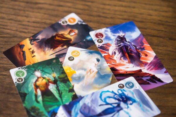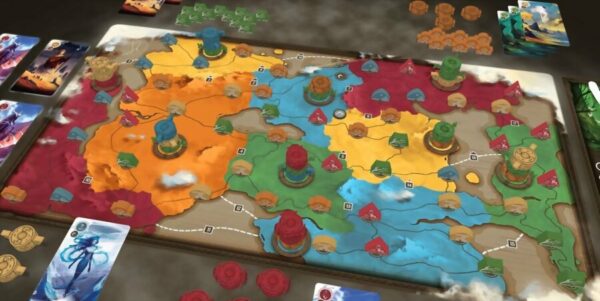 Dans Iwari, chaque joueur représente une tribu nomade explorant de nouvelles régions. D’une part, il faudra poser vos tentes avec soin. D’autre part, il sera crucial d’ériger des totems pour asseoir votre domination. Pour y parvenir, vous utiliserez des cartes de couleur afin de marquer votre présence sur le plateau.