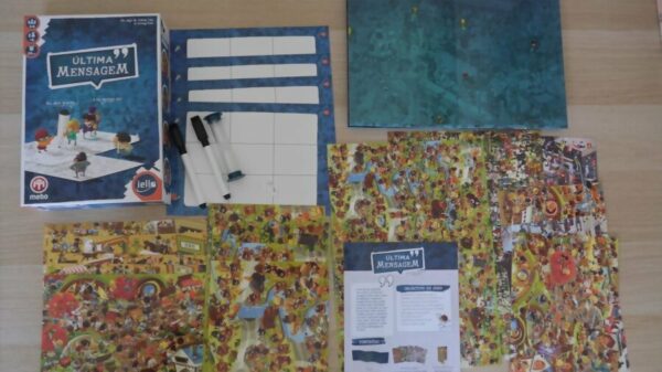 La boîte de Last Message contient des ardoises effaçables, des marqueurs, des cartes de personnages et un sablier. Le design est coloré et attrayant, avec des illustrations qui ajoutent une touche de charme au jeu. Les composants de haute qualité assurent une expérience de jeu agréable et durable.