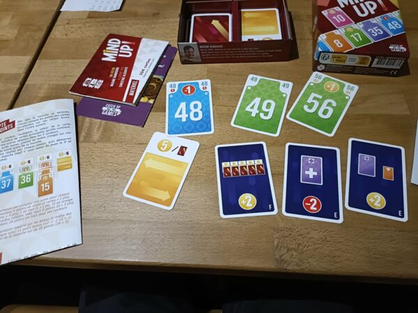 La boîte de Mind Up! contient des cartes de jeu de haute qualité, des plateaux personnels pour chaque joueur, des marqueurs de score et un livret de règles clair et concis. Les illustrations colorées et le design ergonomique des composants assurent une expérience de jeu agréable et immersive.