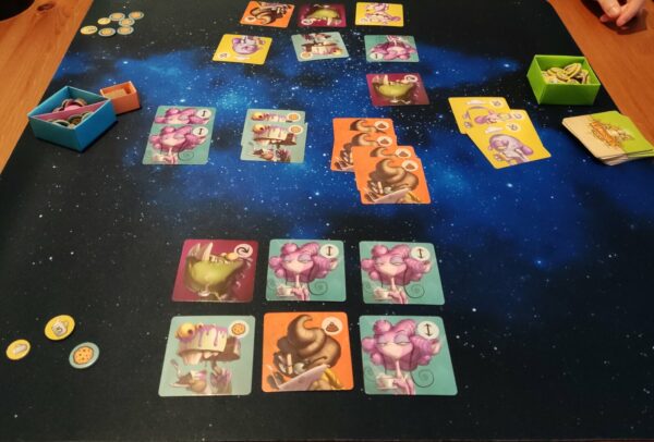 À chaque tour, vous devez déplacer un Monstre depuis une Ligne Avant et activer son pouvoir, générant ainsi des combinaisons aussi tactiques qu’imprévisibles. De plus, les cartes cachées dans votre Ligne Arrière prennent toute leur importance au moment du décompte final, ce qui renforce l’intensité des choix tout au long de la partie. Ainsi, planification, bluff et opportunisme deviennent vos meilleures armes pour rafler les jetons Café tant convoités.