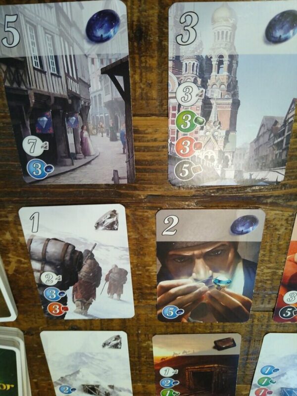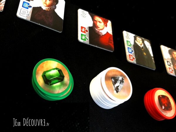 - Nobles : Si vous accumulez les bonnes cartes, vous attirerez des personnages influents. Ceux-ci vous offriront des points de prestige supplémentaires.