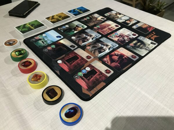 - Cartes de développement : Elles sont divisées en trois niveaux et permettent d’élaborer une stratégie efficace. Vous pourrez acquérir des mines, des artisans et des boutiques raffinées.