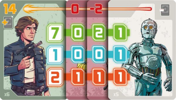 Les cartes cibles ont une valeur de défense, tandis que les cartes chasseurs et droïdes ont une valeur d'attaque. Pour capturer une cible, les joueurs doivent égaler ou dépasser la valeur de défense en utilisant des cartes chasseurs et droïdes. Les contrats offrent des points bonus pour la capture de cibles spécifiques et l'achat de caisses.