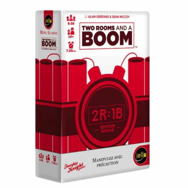 Two Rooms and a Boom - Edition Rouge est un jeu de société de déduction et de rôles cachés pour six joueurs ou plus.
